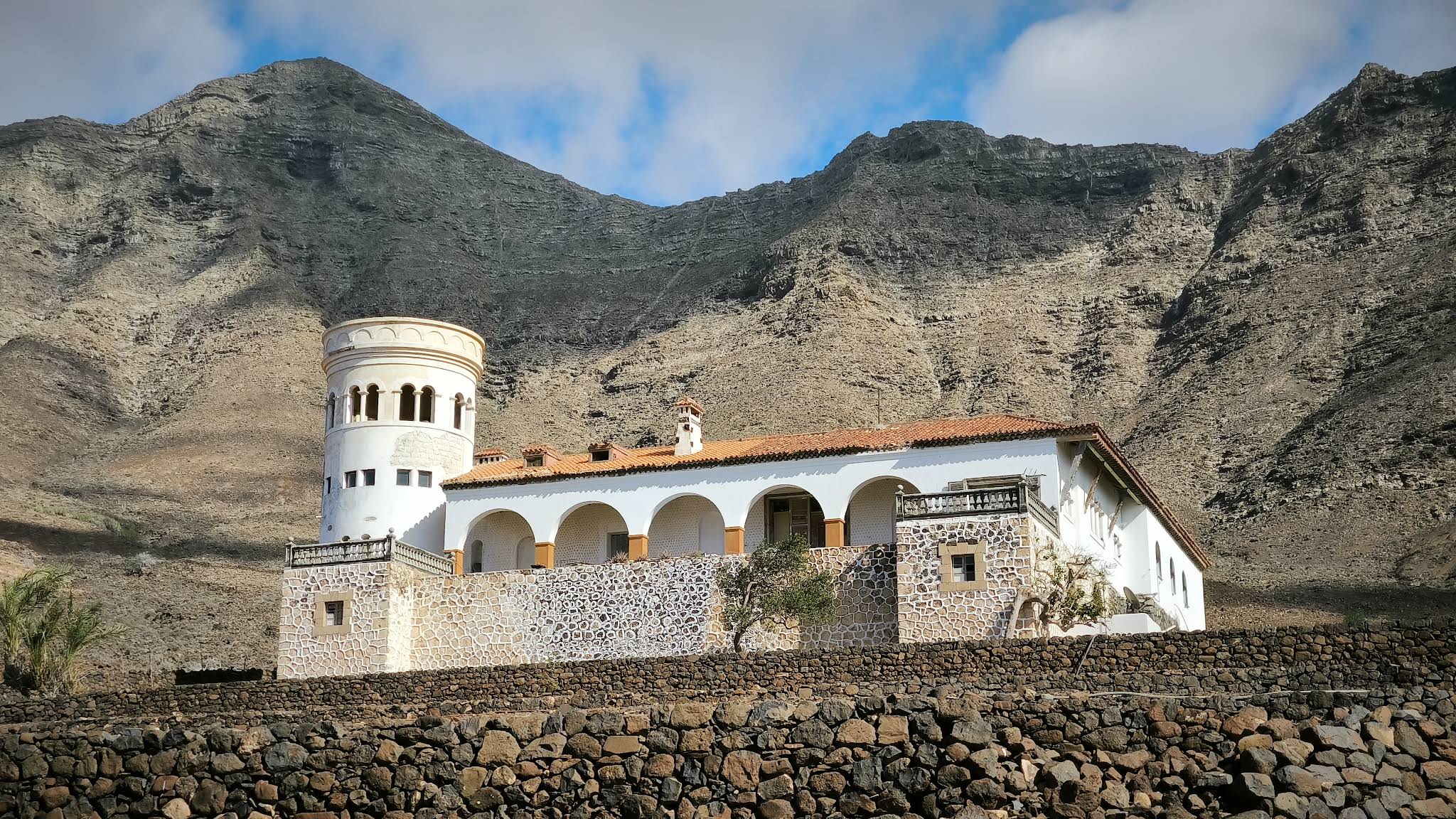 Verlässt man die befestigten Straßen im Süden Fuerteventuras und folgt der staubigen Piste durch das karge Massiv der Jandía-Berge, erreicht man irgendwann einen Ort, der wirkt wie aus einer anderen Welt: Dorf Cofete. Nur wenige Häuser, eine kleine Kapelle – und darüber, scheinbar wachend über das Tal und den endlosen Strand, erhebt sich die Villa Winter.